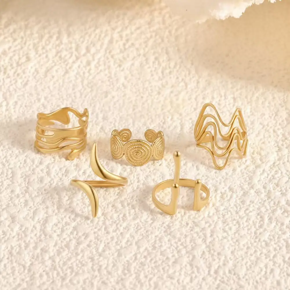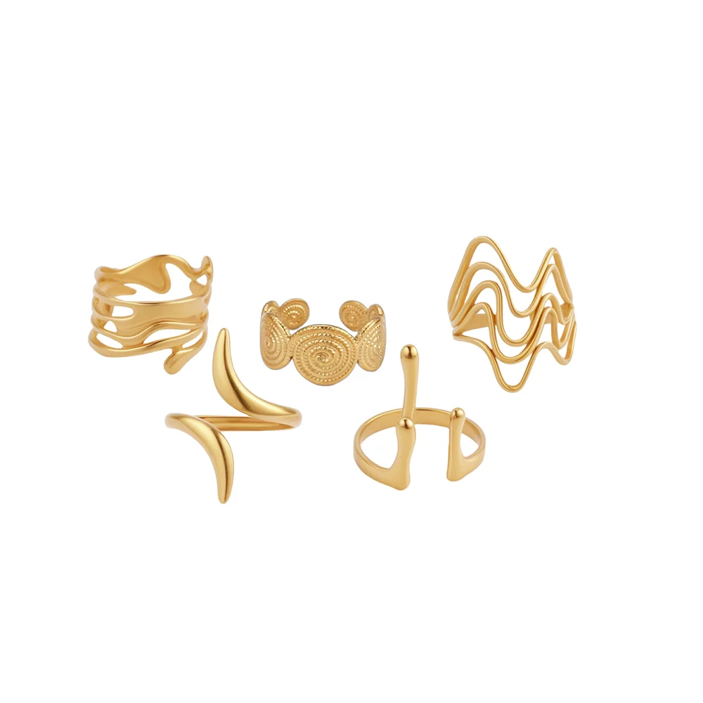 Juego de 5 anillos abiertos irregulares geométricos de acero inoxidable para mujer, diseño minimalista individual, joyería moderna para los dedos.