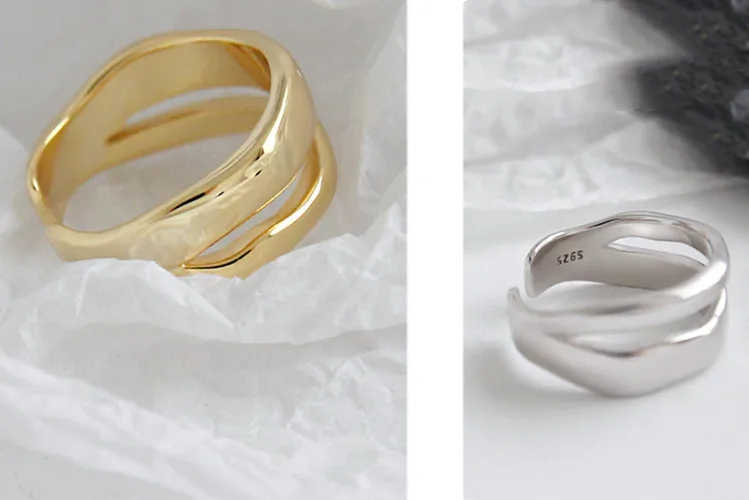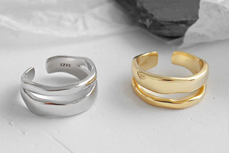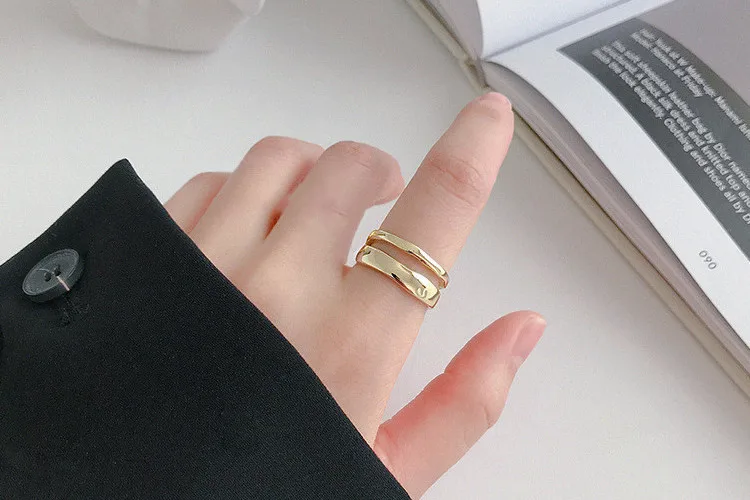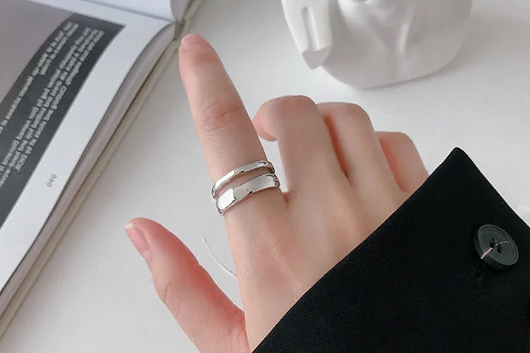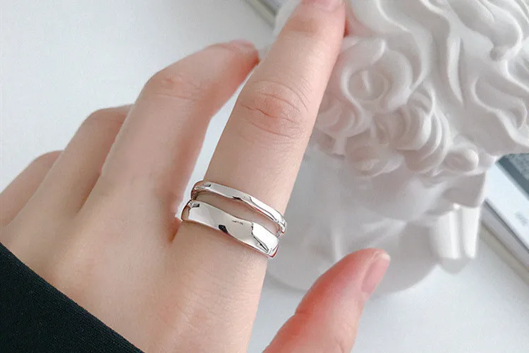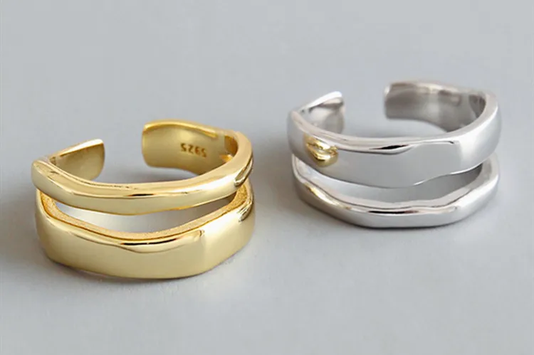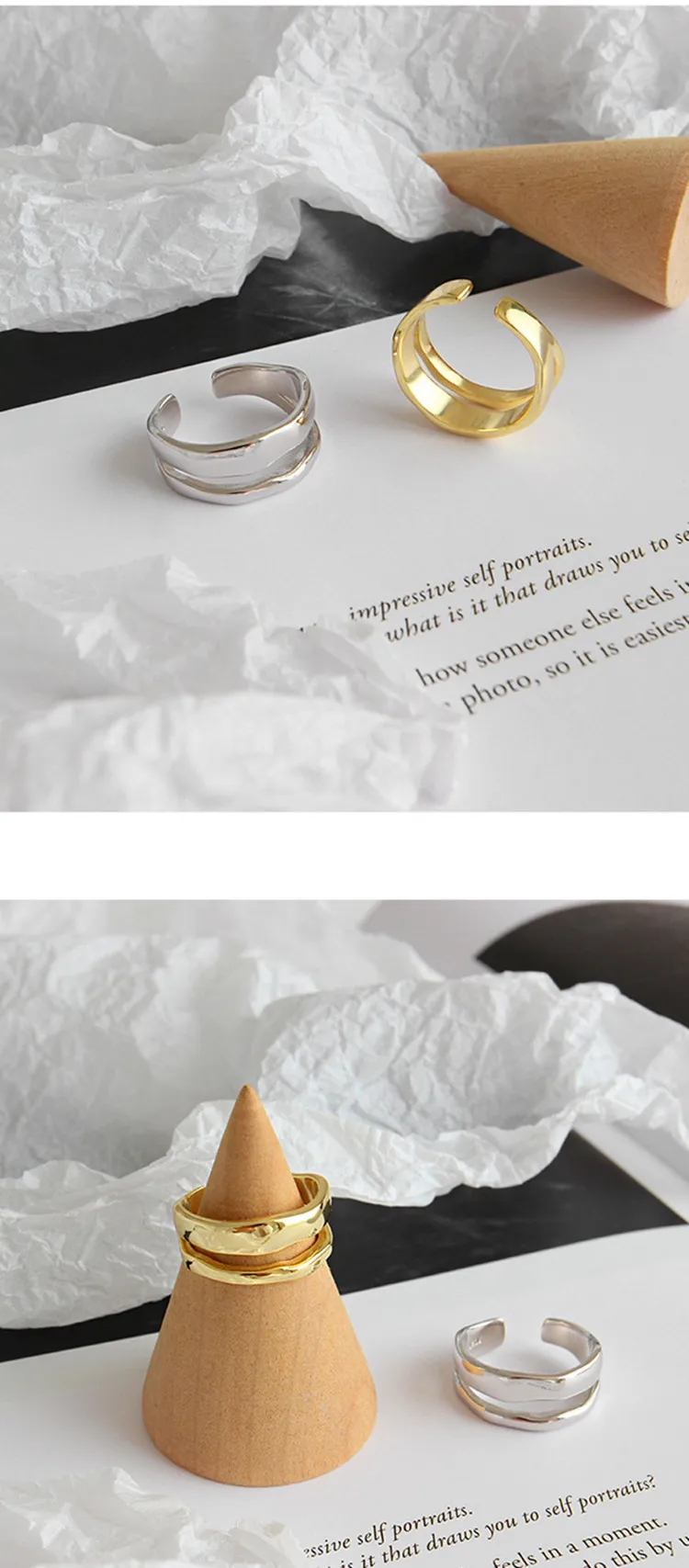 Nuevos anillos geométricos con apertura, sencillos e irregulares, de doble capa y onda suave, en plata de ley 925, con personalidad. R253