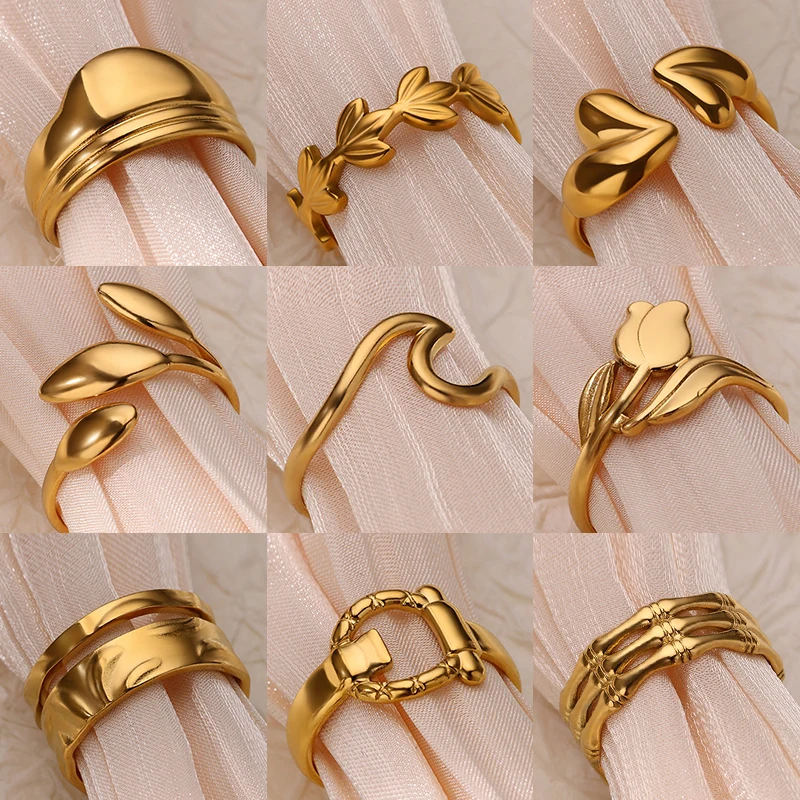 Anillos de acero inoxidable para mujer, anillo geométrico multicapa en color dorado que se abre en el dedo. Novedad en joyería de moda para bodas y fiestas. Resistente al agua.